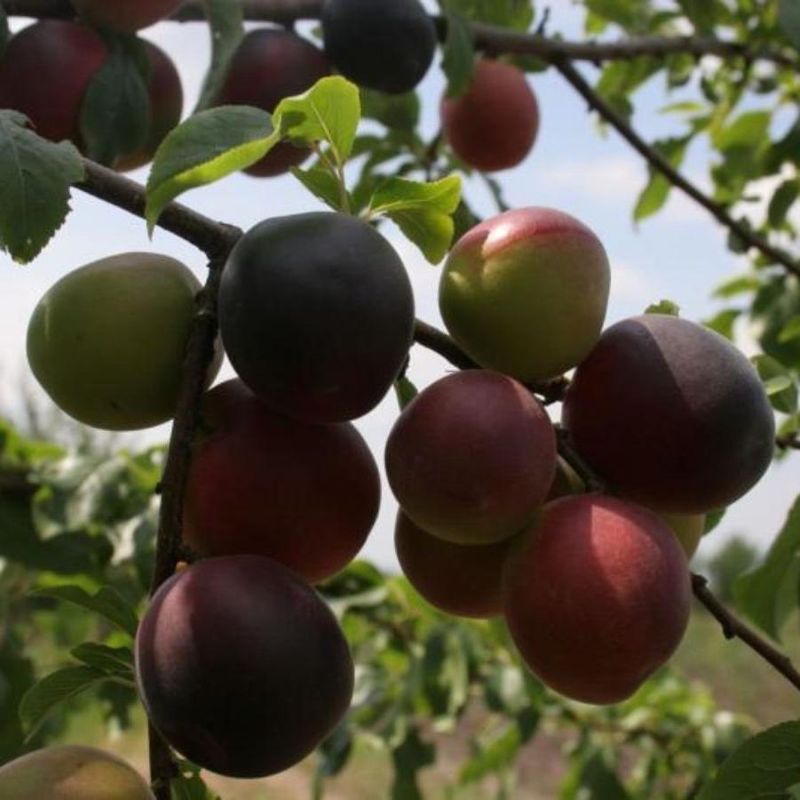 Форма кроны крупномеров Черный бархат плоскоокруглая, не очень густая. Плодоношение раннее – в конце июля.Плоды выглядят очень эффектно: обильно опушенные, темно-фиолетовые, среднего размера (вес около 30 г) они имеют приятный вкус. Желтая мякоть сочная,без труда отделяется от косточки. Лежкость и транспортабельность плодов отличная. Положительными качествами сорта также являются устойчивость к цитоспорозу, клястероспориозу, монилиозу. Кроме того, Черный бархат хорошо переносит зимние холода.