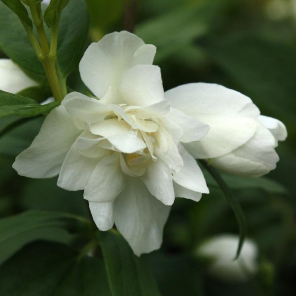 Саженцы чубушника Manteau d’Hermin являются одной из разновидностей садового жасмина. Этот многостебельный кустарник очень редко может вырасти выше 80 сантиметров. Имеет светло- зеленые листья, небольшого размера. На многочисленных боковых побегах у данного вида образуются цветы. Как правило, они белого цвета и небольшого размера (2-3 см.) Наружные лепестки цветка больше, чем внутренние. Manteau d’Hermin цветет дольше всех остальных видов, от 31 до 40 дней. Растение любит свет, поэтому сажать рекомендовано на солнечную сторону. Приживется крупномер Manteau d’Hermin в любом виде почвы. Прекрасно себя чувствует как в групповых, так и в одиночных посадках. Можно использовать для создания живой изгороди.