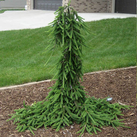 Ель канадская Frohburg - плакучая форма с чётко выраженным прямым стволом и свисающими боковыми побегами. Ветви опускаются вниз и ковром покрывают подножие растения. При подвязывании ствола к опоре можно сформировать зонтичную крону. Хорошо смотрится в одиночной посадке. В возрасте 10 лет достигает высоты 2 м. Хвоя игольчатая, зелёная.