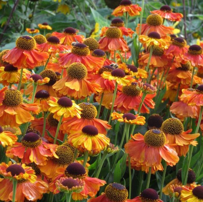Неприхотливое травянистое многолетнее растение, которое очень хорошо адаптируется к разным условиям. Он за короткий период образует очень пышный куст с многочисленными прямостоячими стеблями. Вершина каждого побега увенчивается цветком. Цветки, а точнее соцветия, очень похожи на ромашки. Они представляют собой корзинку с выпуклой серединкой. Листья светло-зеленого окраса. Стебель крепкий и ветвистый. На каждом стебле распускается до 20 цветков! Цветение гелениума обильное и продолжительное. Любоваться его цветками можно в течение нескольких месяцев подряд. Гелениум не имеет многолетнего корневища. Корни вместе с цветоносами ежегодно отмирают, а весной образовываются новые (из почек на подземной части однолетнего стебля). Этот сорт будет расти в суглинистой почве при наличии хорошего дренажа. Он предпочитает хорошо освещенные места. Может расти и в полутени. Его можно располагать в центре или на краю цветника в качестве фона для других растений. Лучше смотрится в групповых посадках.