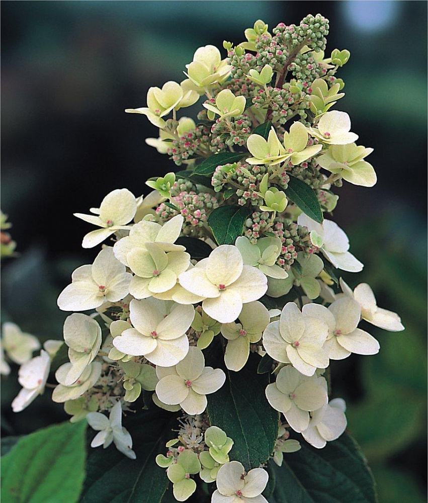 Цветки имеют зауженную, коническую форму и бело-розовую окраску. В самом начале цветения сформировавшиеся небольшие бутоны с тычинками приобретают кремовый оттенок, но по мере роста становятся нежного бледно-розового цвета. Цветение кустарника отличается своей густотой. Метельчатые соцветия начинают образовываться на концах побегов примерно на третьем году жизни растения, их длина может варьироваться от 40 до 55 см. Цветение продолжается с июля вплоть до заморозков