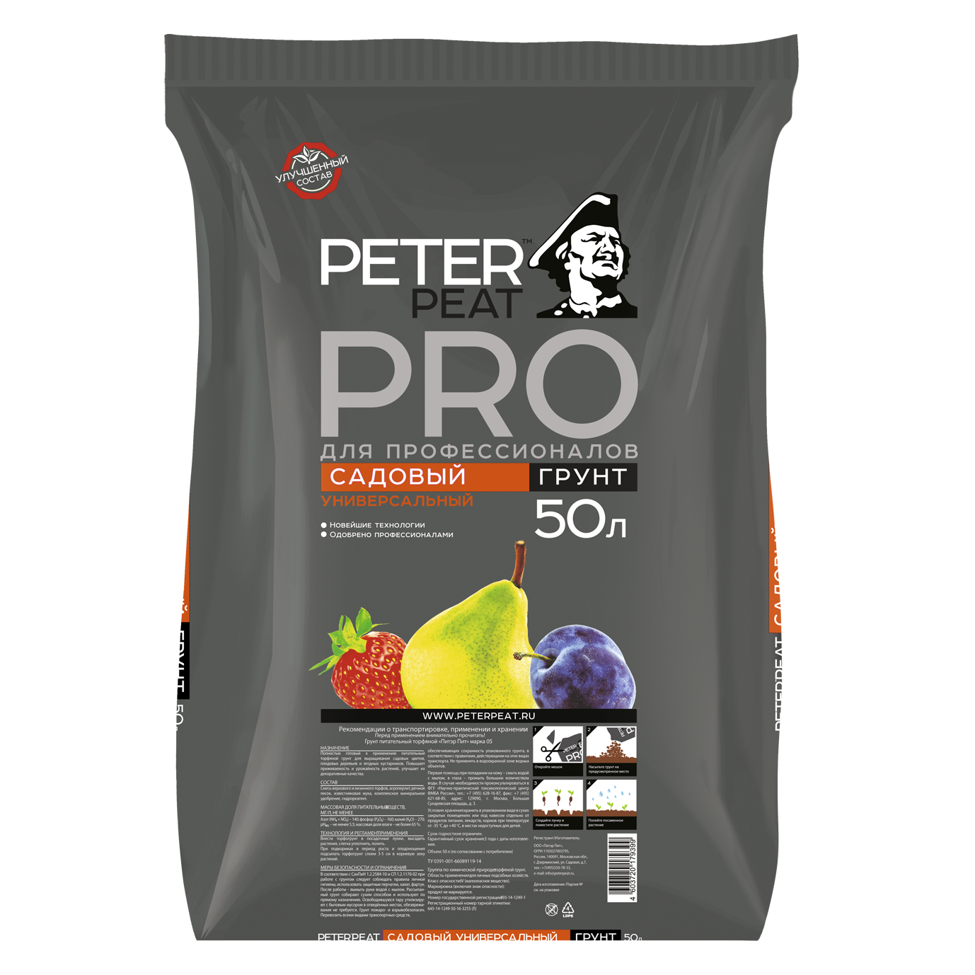 Грунт Садовый Универсальный (Линия ПРО) 50 л - готовый питательный торфяной грунт от производителя для выращивания садовых цветов, плодовых деревьев и ягодных кустарников. Грунт для садового участка повышает приживаемость и урожайность растений, улучшает их декоративные свойства.