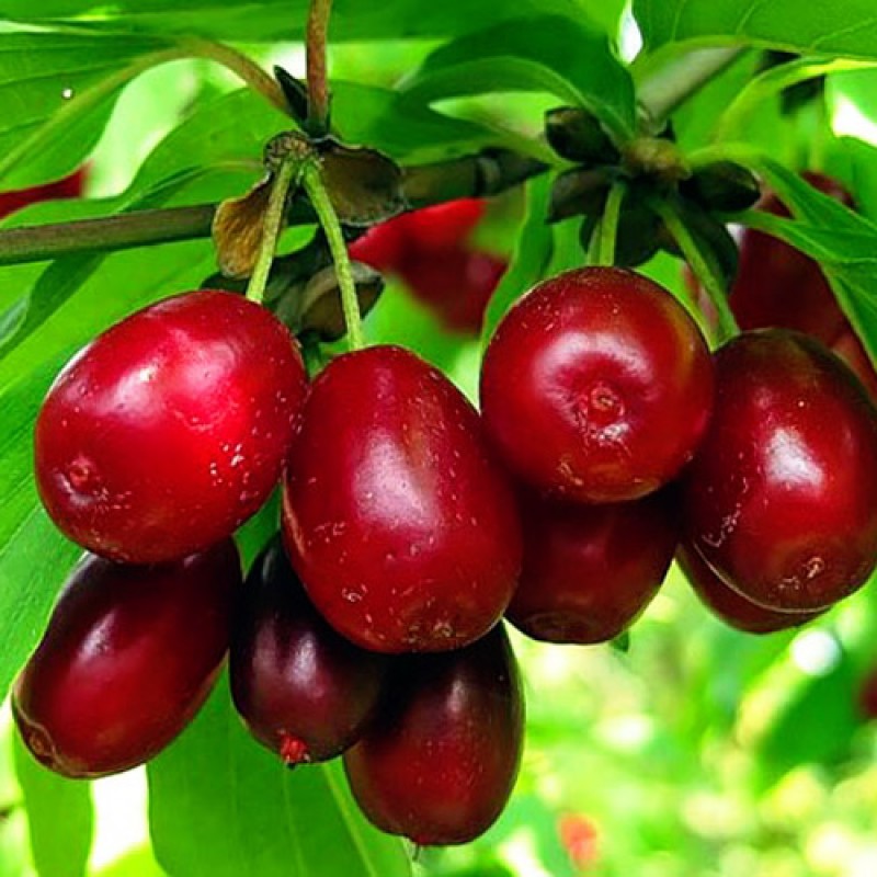 Саженцы кизила Радость обычно высаживают ранней весной. Этот сорт раннего срока созревания. Окраска плодов, как правило, темно-красная до черной. Кожица тонкая, не крепкая, блестящая. Плоды кизила имеют вес 6-7 г, овально-удлиненную до овально-грушевидной формы с сужением к плодоножке. Мякоть сочная, красно-розовая, мягкая, хорошо отделяется от косточки. Косточка составляет 10% от массы плода кизила. Плоды прекрасно держатся на дереве, практически не осыпаются при созревании. Крупномер Радость зимостойкий. Урожай с 10-летнего дерева составляет 18-20 кг. Ягоды пригодны для потребления в свежем виде, а также для различных видов технической переработки. Сорт Радость засухоустойчивый и ежегодно плодоносит.