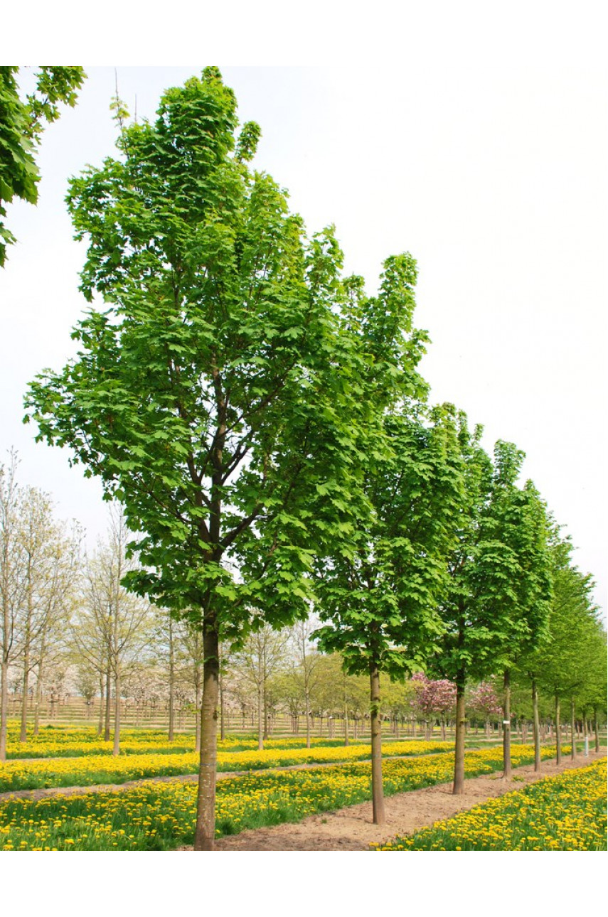 Саженцы клена остролистного Columnare прекрасно растут в городских условиях. Высота их 12 м, а овальная крона достаточно компактна, чтобы отлично вписаться в любой ландшафт.Крона неширокая, до 4 м, имеет форму колонны, позже конуса. Ветки направлены вверх вертикально.Листья окрашены в начале сезона красным, а позднее темно-зеленым цветом. Осень расцвечивает листву клена желтыми красками.Щитковые соцветия их мелких цветочков обладают фруктовым ароматом.Плод в форме крылатки.Достоинствами клена остролистного Columnare считается хороший рост, независимо от освещенности места.