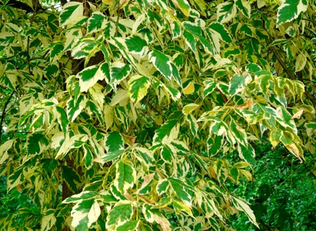 Клен Elegans - небольшое дерево или кустовая форма до 5-6 метров высотой. Растет умеренно быстро. Крона округлая с длинными, мощными побегами. Листья, скрученные зеленые с золотистыми прожилками очень эффектные. Цветет до распускания листьев, в марте-апреле, в течение двух недель, цветки мелкие, на длинных цветоножках.
