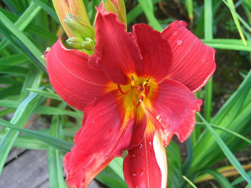 Саженцы лилейника Anzac – это удивительные растения, которые обладают красными цветками с ярко желтым горлышком. Они вырастают до 70 см. Средний диаметр цветка – 18 см. Цветение начинается в начале августа, и продолжается до полутора месяцев. Крупномер Anzac предпочитает хорошее освещение, плохо переносит тени. Если сажать растение в темных местах – оно может отказаться от цветения. Желательно содержать его в глинистой земле, при посадке необходимо добавить немного перегноя. Цветы прекрасно подходят для срезывания. Особенно шикарно саженцы выглядят возле декоративных водоемов, а также – на домашних приусадебных газонах.
