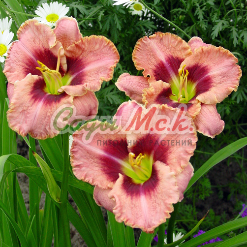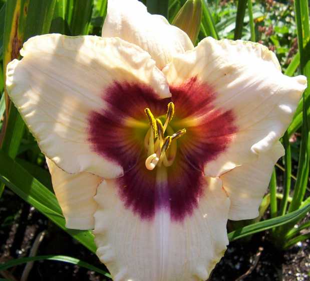 Саженцы лилейника Blueberry Candy – цветок округлый с перекрывающимися гофрированными лепестками, имеет кремово – белую окраску с крупным красно-сливовым глазом. Горло желто-зеленое. Слегка гофрирован, лепестки волнистые. Крупномер Blueberry Candy издает тонкий аромат, похож на запах ландыша. Обильное дневное цветение. Тетраплоид. Высота – 70 см. Один из популярных сортов, распространенных в садах Европы. На каждом цветоносе одновременно цветут 1-3 цветка диаметром до 11 см. В конце лета – начале осени возможно повторное цветение, но цветков образуется гораздо меньше. Листья прикорневые, яркие, сочные, узкие.