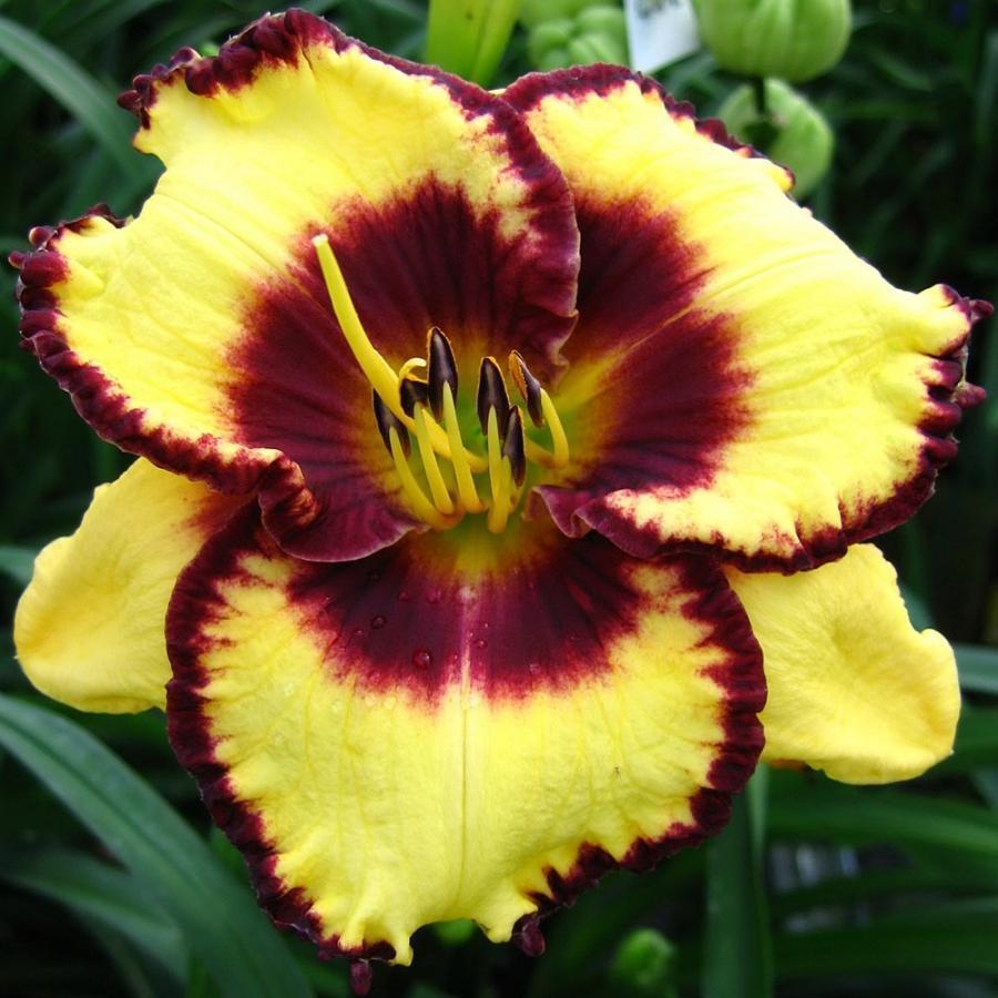 Лилейник гибридный Калико (Calico Jack) – травянистое растение, помогающее разнообразить и украсить любой участок. Цветение продолжается 35 – 45 дней. На цветоносах формируются цветы насыщенного желтого окраса с бродовым центром и бордовым окаймлением на каждом лепестке. А каждый цветок достигает 15 см в диаметре. Лилейник отличается обильным цветением и его длительным сроком. Калико Джек – это вечнозеленый сорт, вырастающий до 70 см в высоту, имеющий изящные узкие листья, собранные в прикорневую розетку. Сочная листва отлично смотрится в течение всего лета и добавляет дополнительных красок и декоративности участку.