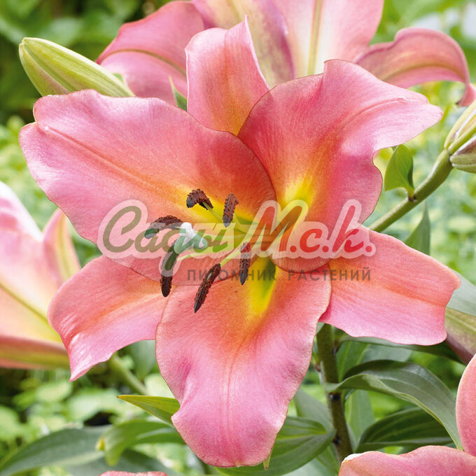 Лилия Space Mountain - гибрид. Высота - 105см. Листья темно-зеленые. Стебель высокий, темно-зеленый с 9 цветками. Внутренняя сторона цветка сильно\умеренно пурпурно-красная, лепестки желто-зеленые у основания, центральная жилка в основании желтая; внешняя сторона пурпурно-красная. Крап и папилломы присутствуют. Нектарники зеленые. Рыльники коричневые. Рыльце пурпурное с зеленой звездой. Размер лепестков короткий или средний, края слегка волнистые, кончик загнут.