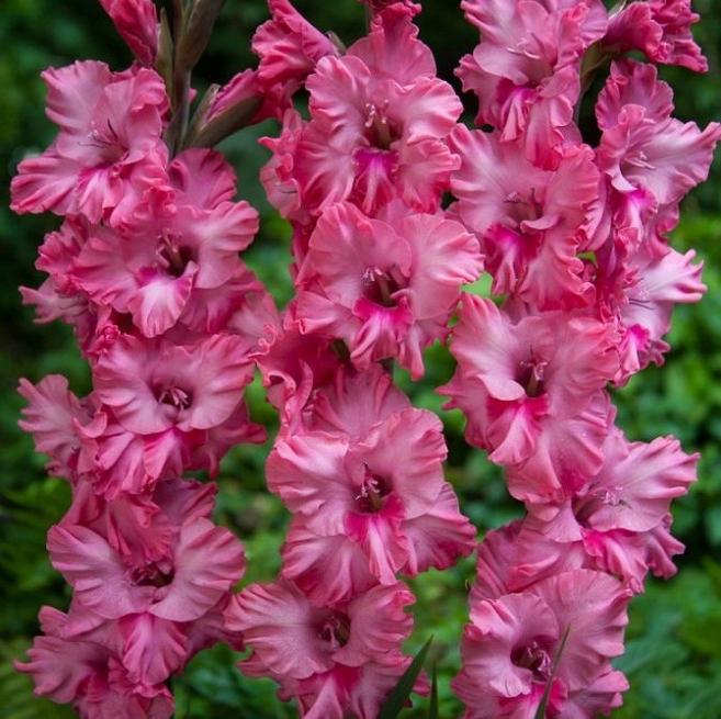 Луковицы Гладиолуса гофрированного Кингстон (Gladiolus Kingston) пользуются особой популярностью у садоводов за неповторимую красоту сорта – нежные гофрированные лепестки и обильное долгое цветение (с июля по октябрь). Многолетник не требователен в уходе, ему необходима подкормка, регулярный полив и солнце. Безветренные участки предпочтительней. Растение имеет крепкие высокие стебли, на которых располагаются мечевидные листья и обилие соцветий из объемных воронкоподобных цветков (с гофрированными лепестками). Гладиолус гофрированный Кингстон имеет праздничную ярко-розовую окраску. После цветения, осенью, луковицы выкапывают для зимнего хранения.