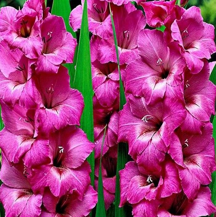 Луковицы гладиолуса крупноцветкового Фиделио (Fidelio) предназначены для высадки в цветники романтического дизайна. Насыщенный сиренево-розовый оттенок бутонов наполнит композицию нежной яркостью и сочной жизненной энергией. Сорт Фиделио гармонично сочетается с белыми и желтыми цветами, а так же с пестролистными декоративными растениями. Высота гладиолуса достигает 1 метра, размер цветоноса от 50 до 70 сантиметров. Цветки крупные, формой напоминают соцветие мальвы. Цвет яркий, розовый с сиреневым оттенком, в горловине цветка присутствует малиновое пятно. Цветение позднее – с августа по сентябрь. Одновременно на Гладиолусе крупноцветковом Фиделио раскрываются до 10 бутонов.