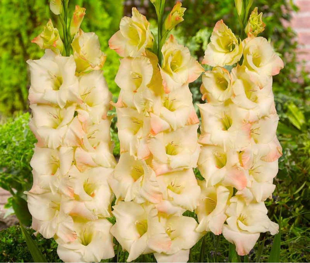 Гладиолус крупноцветковый Крим Перфекшн (Gladiolus) порадует своим цветением уже в середине лета. Высокорослый сорт цветет кремовым нейтральным цветом и поможет разбавить яркие цветники. Гладиолус также можно посадить самостоятельно, он отлично смотрится в группах по несколько штук.