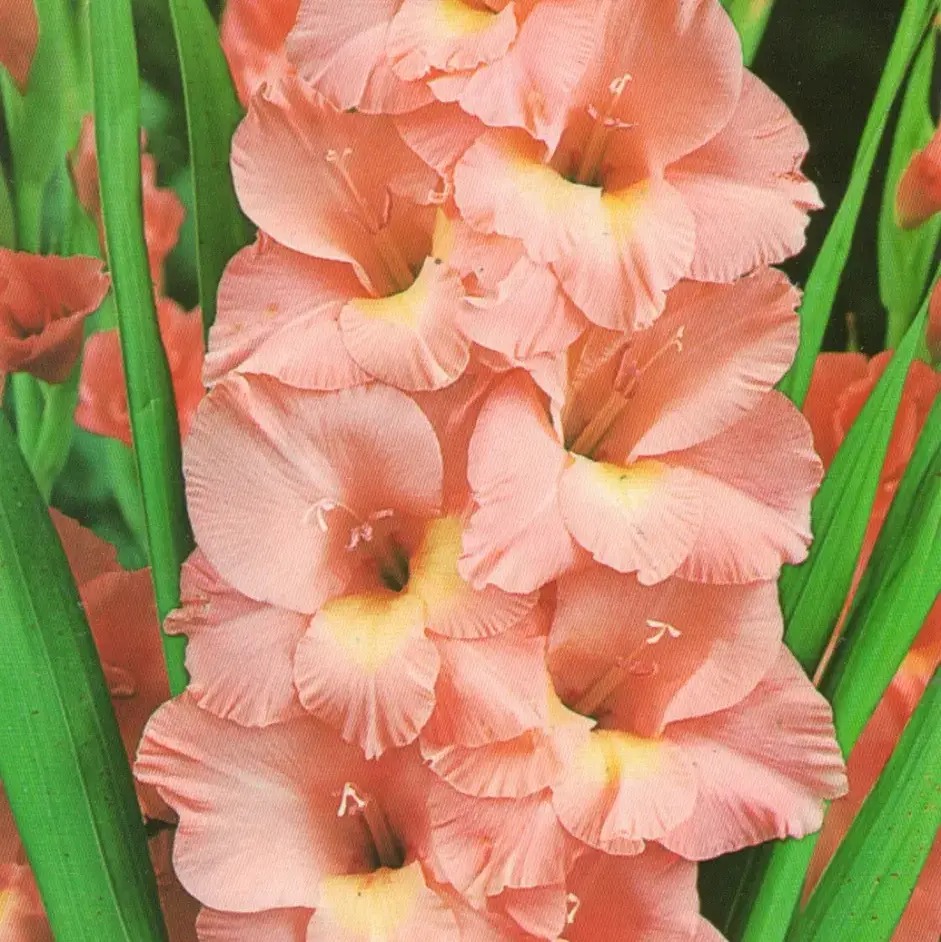 Луковицы гладиолуса крупноцветкового Прага ‒ яркий многолетник для клумб и цветников, а также для среза и составления букетов. Он представлен рослыми кустами, которые достигают до 80‒110 сантиметров в высоту. Гладиолусы предпочитают плодородные, хорошо дренированные почвы и освещенные участки ‒ в таких условиях они вырастают крупными и яркими. На одном цветоносе формируется до 9 бутонов одновременно, за сезон их количество может достигать 25 штук. Они окрашены в нежный лососевый оттенок с плавным переходом к желтому центру. Гладиолус крупноцветковый Прага эффектно выглядит самостоятельно, но также хорошо сочетается с другими цветами.