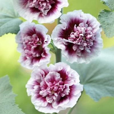 Мальва розовая Крем де Кассис (Crème de Cassis) очаровывает утонченной красотой махровых бутонов двойной окраски: края лепестков снежно-белые, нижняя часть, близкая к сердцевине, красно-фиолетовая. Цветки расположены на стебле густо, цветение длится более 2 месяцев. Срезанные в фазе бутонизации цветоносы долго сохраняют свежесть в букете.