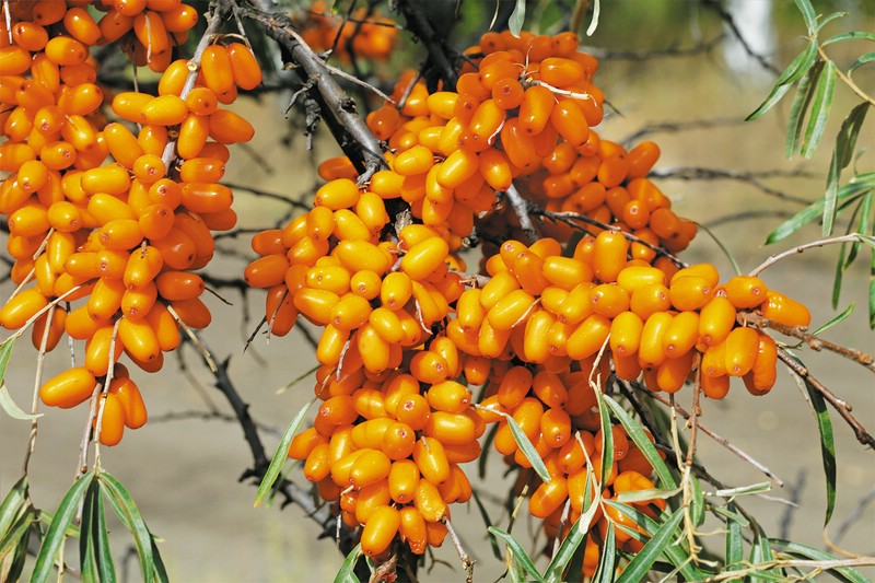 Облепиха Елизавета - куст среднерослый, с овальной кроной средней густоты. Колючесть очень слабая. Побеги прямые, зеленовато-серые, междоузлия средней величины. Плоды крупные, цилиндрические, оранжевые. Характер отрыва полусухой, усилие отрыва плодов среднее. Вкус сладкий, с приятным ароматом. Сорт универсального назначения. Плоды пригодны для потребления в свежем виде и для различных видов переработки.