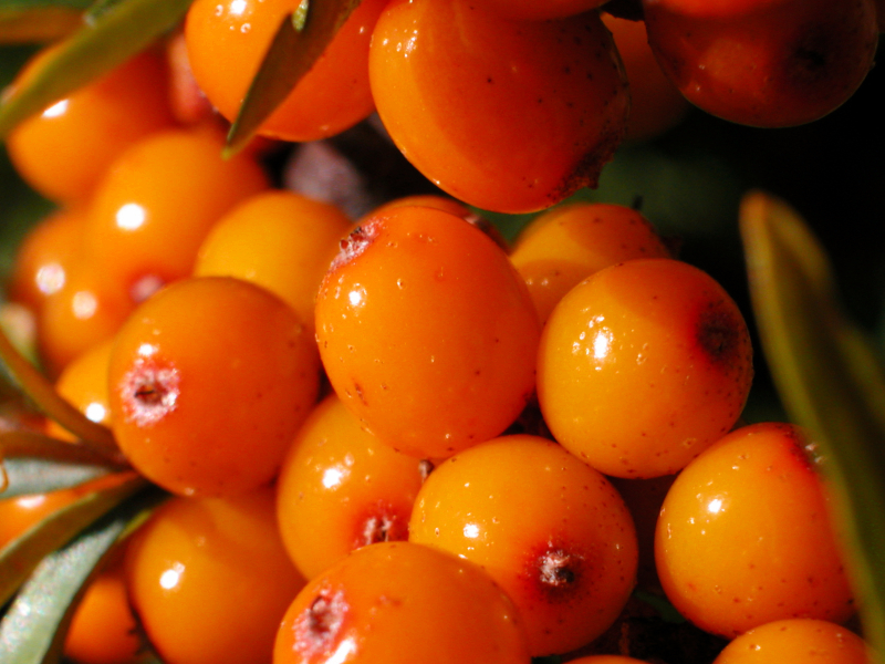 Саженцы облепихи Солнечная на сегодняшний день пользуются большой популярностью. Из них вырастают кустарники высотой до 4-х м с пирамидальной формой кроны. Колючек мало, листья крупные, светло-зеленые. Ягоды овально-цилиндрические, желто-оранжевой окраски. Сорт раннего срока созревания (в начале августа). Мякоть имеет ананасовый запах. Кустарник устойчив к различным вредителям и трахеомикозному усыханию.
