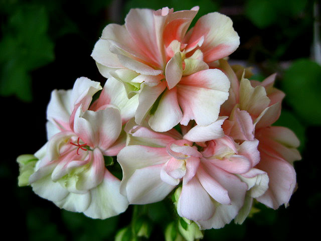 Пеларгония Ludwigsburger Flair - карликовый сорт. Цветки махровые, крупные, розово-белого окраса с более насыщенными розовыми пятнами на лепестках и светлыми краями с зелеными оттенками. Лепестки гофрированные. Соцветия крупные и плотные. Цветение обильное.
