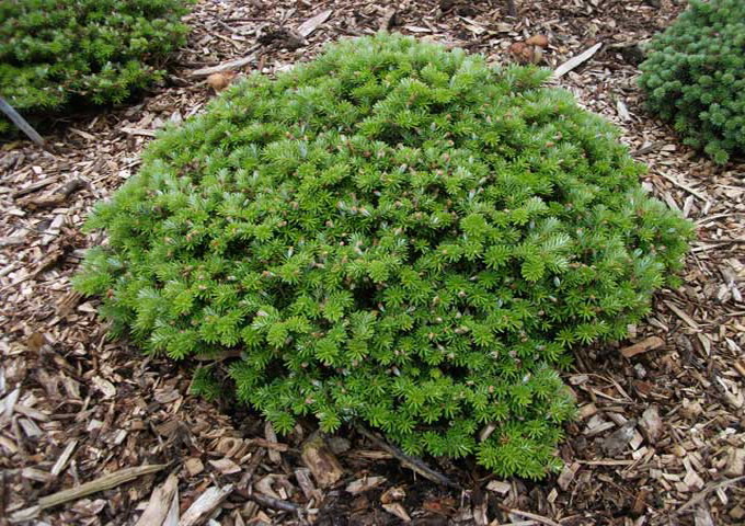 Пихта корейская Doni Tajusho - карликовый сорт. Высота взрослых растения около 0,5 м, диаметр кроны чуть больше. Ежегодный прирост 2—3 см. Скелетные побеги короткие, сильно ветвящиеся, плотно прижаты друг к другу, разрастаются в стороны равномерно, от центра отходят под углом и направлены в стороны и вверх. Крона очень плотная, густая, симметричная, куполообразная, уплощенно-шаровидная или округлая. Растение напоминает слегка приплюснутый шар. Старые иголки тёмно-зелёные, молодые сочно-зелёные, снизу пепельно-голубые, до 3—3,5 см длиной. Используется при создании рокариев и альпийских горок.
