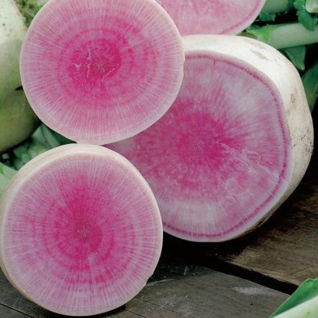 Редька Мисато Пинк отличается особой холодостойкостью. Корнеплод крупный, диаметром около 7-8 см, розовато-красный с фиолетово-розовой мякотью, твердый, хрустящий, сочный, мягкого вкуса, лежкий. Сорт созревает около 35-40 дней, устойчив к болезням. .