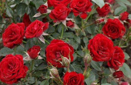 Роза Scarlet интересна очень насыщенной бордовой окраской цветков, эффектно выделяющихся на фоне ярко-зеленой листвы и в обилии покрывающих куст. Цветки мелкие, махровые, без запаха, собраны в соцветия. Цветение продолжается до поздней осени. Кусты низкорослые (до 50 см), раскидистые, хорошо растут и отличаются неприхотливостью.