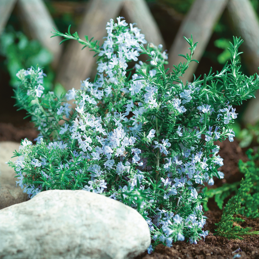 Розмарин лекарственный Блю Винтер (Rosmarinus officinalis Blue Winter) наполнят сад характерным своеобразным ароматом и гармонично вольются в цветочную композицию. Растения данного сорта розмарина вырастают до 80-90 сантиметров в высоту. Сине-зеленые листочки имеют игольчатую форму. Цветение – в июне, небольшими махровыми сиренево-голубыми цветочками. Листья используют как в свежем, так и в сухом виде в качестве специи и как лекарственное растение. Розмарин не переносит засухи, также не любит повышенной влажности. Благоприятное место для его полноценного развития – хорошо освещенные участки