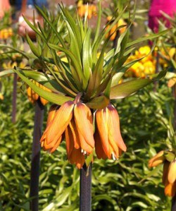 Рябчик Garland Star – удивительный сорт из императорской группы, который отличается большим количеством цветов на стебле. Цветков больше, чем у других сортов. Вырастает он до 1 м в высоту, цветонос очень толстый и крепкий, тёмно-коричневого цвета. Поэтому без сомненно можете выращивать сорт на открытых пространствах, так как ветер или дождь не смогут испортить посадку. Лепестки цветов ярко-оранжевые, с бордовым оттенком у основания. Они образуют широкую крупную корону, которую сложно спутать с другими сортами. Сорт зацветает в конце апреля – в мае. Он относится к группе позднецветущих, поэтому кульминация цветения придётся на середину мая.