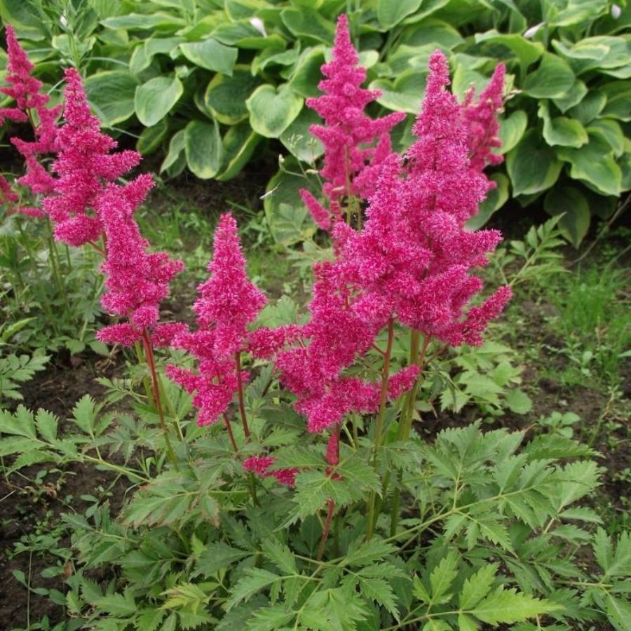 Саженцы астильбы Obergärtner Jürgens становятся главным украшением изысканных миксбордеров, каменистых горок, клумб и различных живых композиций. Этот среднерослый сорт радует глаз бронзово-красными листьями, которые летом зеленеют, а также невероятно насыщенными красками ярко-красных соцветий.