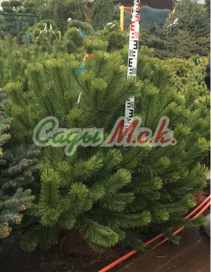Взрослое растение вырастает до 3 м как в высоту, так и в ширину. Формирует стелющуюся, распростертую крону. Ежегодно побеги вырастают на 10 см в высоту и 12 см – в ширину. Ветви подняты вверх, короткие, покрытые жесткой, игольчатой хвоей темно-зеленого оттенка. Длина иголок – около 4 см. Крупномер горный Мугнус светолюбив, хорошо развивается на солнечных участках и угнетен в тени. Не боится сильных ветров и морозов, не требователен к почве. Сорт используют в альпинариях и для формирования живой изгороди.