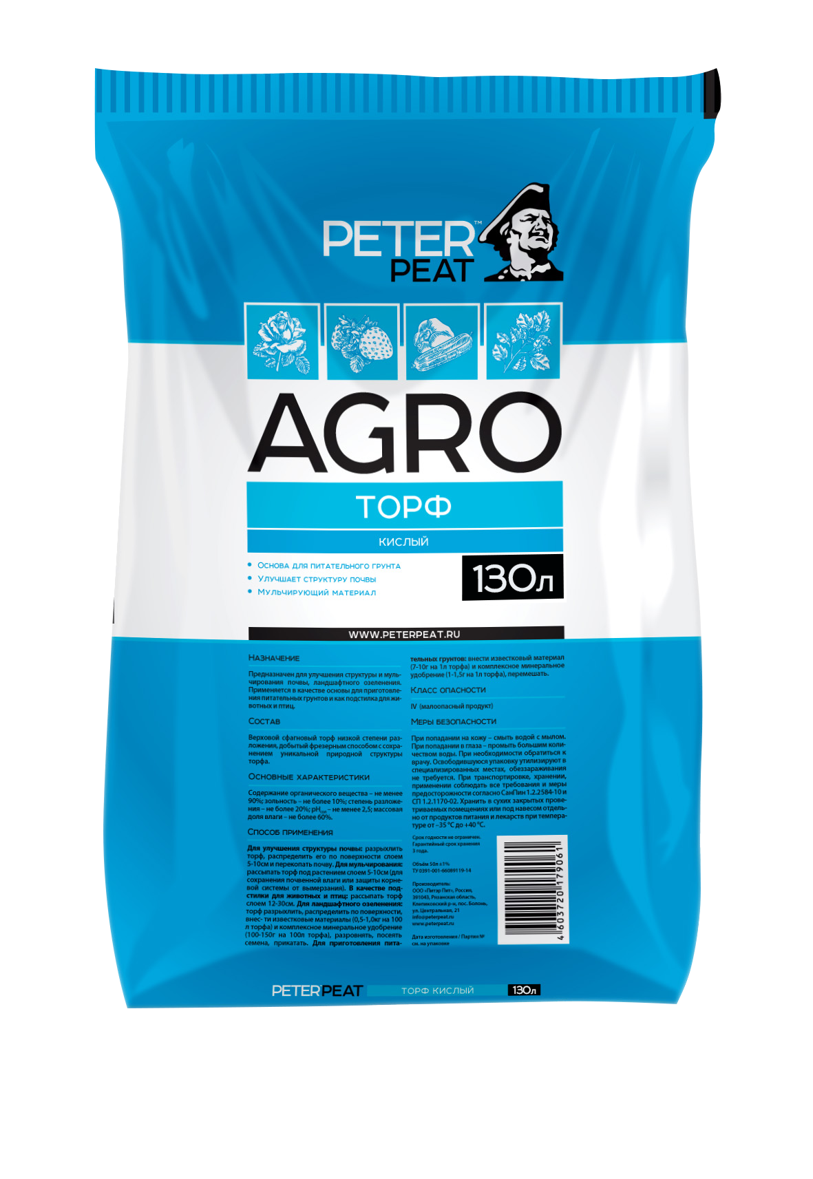 Торф верховой кислый (фракция 0-20, Линия АГРО) 130 л - для улучшение структуры и мульчирования почвы, ландшафтного озеленения, в качестве подстилки для животных и птиц. Экологически чистый и однородный состав. Применяется в качестве основы для приготовления питательных грунтов.