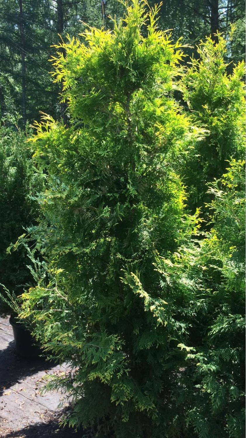 Небольшое хвойное деревце с конической кроной. Растет медленно. В 15 лет достигает высоты 2м и 0,8м в диаметре. Характерная особенность сорта – ярко-желтые (почти оранжевые) побеги текущего года, которые делают деревце ярким солнечным акцентом на фоне темно-зеленой и голубоватой листвы других хвойных и лиственных растений. Позже листва становится светло-зеленой, а при подготовке к зиме приобретает бронзовый оттенок.