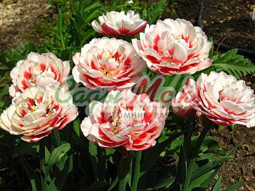 Тюльпан Upstar - это поздноцветущий сорт, который относится к классу Махровых поздних тюльпанов. Густомахровый цветок внешне напоминает соцветие пионов. Секрет его красоты – гармония белого, розового и желтого цвета. В раскрытом виде размах ярких лепестков равен 8-10 см в диаметре. Еще одно достоинство этого сорта – декоративные листья. Они серо-зеленого цвета с белыми и розовыми продольными полосами. Цветение у этого сорта продолжительнее, до трех недель. Цветонос достаточно крепкий, высотой 45-60 см. Период цветения – май.