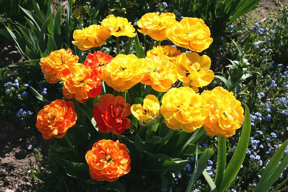 Тюльпан Double Beauty of Apeldoorn - махровый многоцветковый сорт позднего срока цветения. Зацветает в мае. Высота растения 40 -50 см. Высота бутона - 6- 7см, диаметр бутона 12- 15 см. Цветок большой насыщенного желто-оранжевого цвета и с большим количеством лепестков, напоминающий пион. Растение средней силы роста. Используется для озеленения, клумбовой посадки и для срезки.