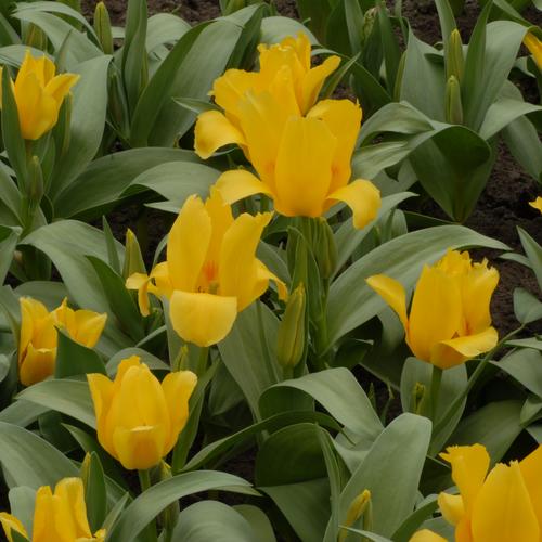 Тюльпан Gele Compostella - небольшое декоративное растение средней высотой 25 см. Стебли светло-зеленые, тонкие. Листья зеленые с серебристым оттенком, однотонные. Цветки чисто-желтые, у основания оранжевые, слабомахровые.