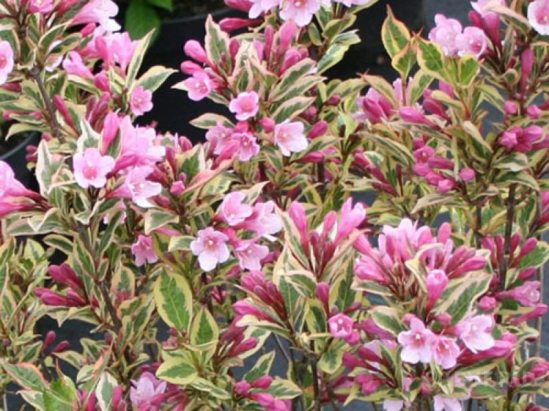 Саженцы Вейгелы Magical Rainbow способны достичь 1.2-1.3 метра в высоту, а разветвление в ширину у этого растения самое разлогое среди сородичей. Особенностью крупномера Magical Rainbow является цвет листьев: весной они зеленые с желтой каемкой, а к осени их очертания приобретают красно-багровый цвет. Цветет это растение очень светлыми розовыми вытянутыми колокольчиками, собранными на ветке по 4-5 штук. У этого сорта Вейгелы слегка заостренные листочки, которые наделены желтоватой каемкой, розовеющей в течение летнего периода. Плодов как таковых она не имеет, тем не менее, требует постоянного удобрения и разрыхления почвы.