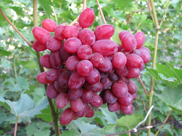Виноград плодовый Кишмиш Велес - бессемянная гибридная форма винограда очень раннего срока созревания (95–100 дн.). Один из лучших кишмишных сортов винограда на сегодняшний день. Грозди крупные и очень крупные, до 2000 гр. Цветок обоеполый. Ягода розовая, 4,5-5 гр., мускатная, мякоть плотная. Кожица при еде не ощущается. Сорт морозостойкий, устойчив к милдью, оидиуму.