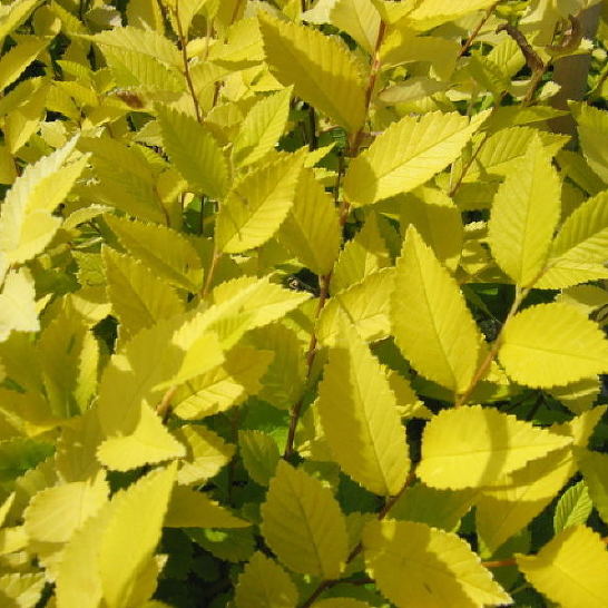 Красивое дерево или кустарник с небольшими гофрированными нежно-желтыми листьями. Не дает корневых отпрысков.
