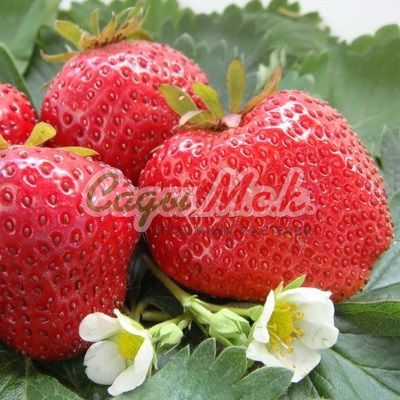 Саженцы земляники садовой Фестивальная ромашка принадлежат к урожайным сортам. Куст высокий, сильный, с густой листвой, цветоносы находятся с листьями на одном уровне. Плод крупный конической формы, с шейкой, обладает глянцевой темно-красной кожицей. Мякоть сочная, ароматная, сладкая. Крупномер земляники садовой Фестивальная ромашка устойчив к заболеваниям, ягоды используются для замораживания, консервации. Рекомендуется посадка на солнечной стороне в плодородную почву, так как от этого будет зависеть плодородие. В период плодоношения требуется регулярный полив.
