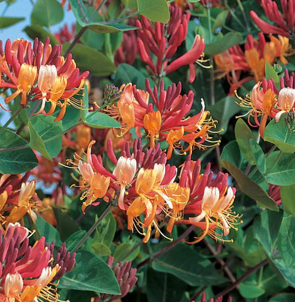 Саженцы жимолости Goldflame очень быстро растут, и уже в короткие сроки на участке будет вьющаяся декоративная лиана до 3-х в высоту с густыми листьями. Даже если молодые побеги зимой обмерзнут, новые в следующем сезоне быстро отрастут, сохранив декоративность куста.Цветы и плоды на саженцах появляются на 3-4 год в период с июня и до октября (если тепло). Цветочки имеют нежный аромат и двухцветные бутоны – светло-желтые внутри и розово-красные снаружи. С августа начинают появляться темно-красные плоды. Крупномер Goldflame растет в любой почве, на солнечной или полузатененной стороне.